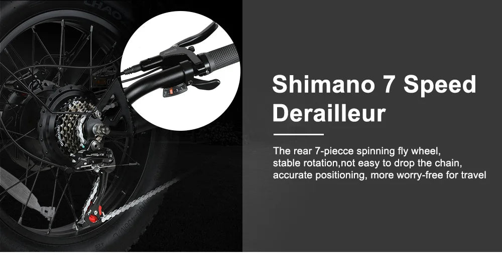 This high-performance electric bicycle features a robust 2000W dual motor system paired with a 48V 36AH detachable lithium battery, delivering speeds up to 55 km/h and a range between 31 to 60 km. Built on a durable 20-inch high carbon steel frame with reinforced suspension forks and 4.0-inch fat tires, it offers excellent off-road capability and stability. Equipped with a Shimano 7-speed derailleur, hydraulic disc brakes, and an advanced YL90T LCD display with USB charging, this model ensures precise control and convenience for riders seeking a powerful, reliable off-road electric bike.