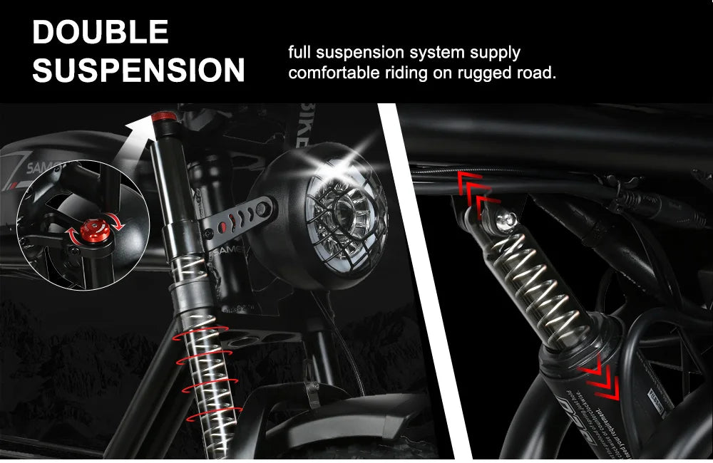 2000W Fat Tire Electric Bike – 48V 36Ah Detachable Battery, 20" Off-Road, High-Carbon Steel Frame
