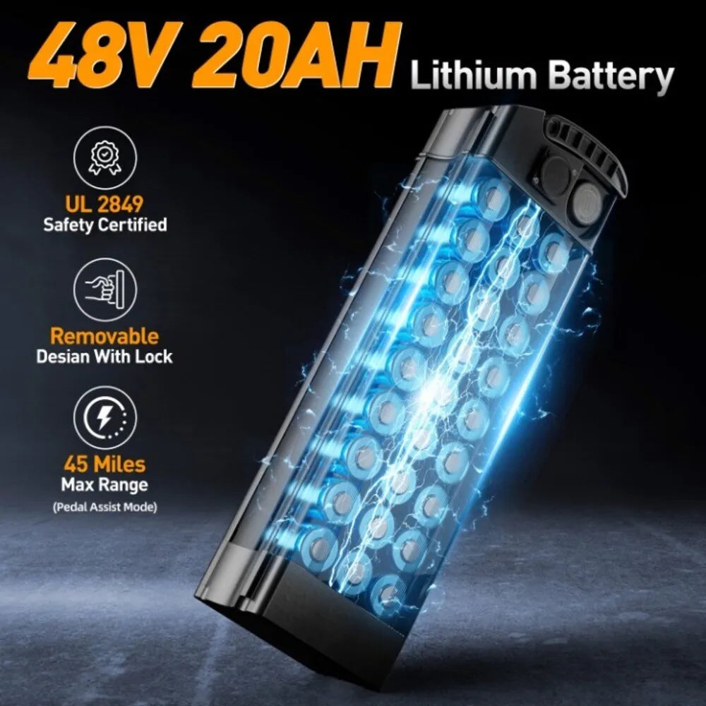 This electric bike features a powerful 500W peak motor that ensures efficient and reliable performance for urban commuting and recreational rides. Equipped with a 48V lithium battery, it offers a balanced combination of power and endurance for a smooth riding experience.