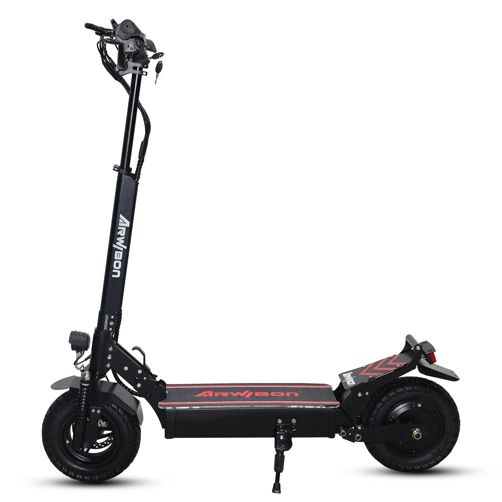 Compared to many industry-standard electric scooters, this model stands out with its combination of a powerful motor and extensive battery capacity, allowing for longer rides at higher speeds. While typical scooters offer 8-10 inch tires, the 11-inch off-road tires on this scooter ensure better shock absorption and handling on uneven surfaces. Its dual shock absorption system further enhances rider comfort by effectively smoothing rough terrains, setting it apart from earlier models that rely on basic suspension systems.
