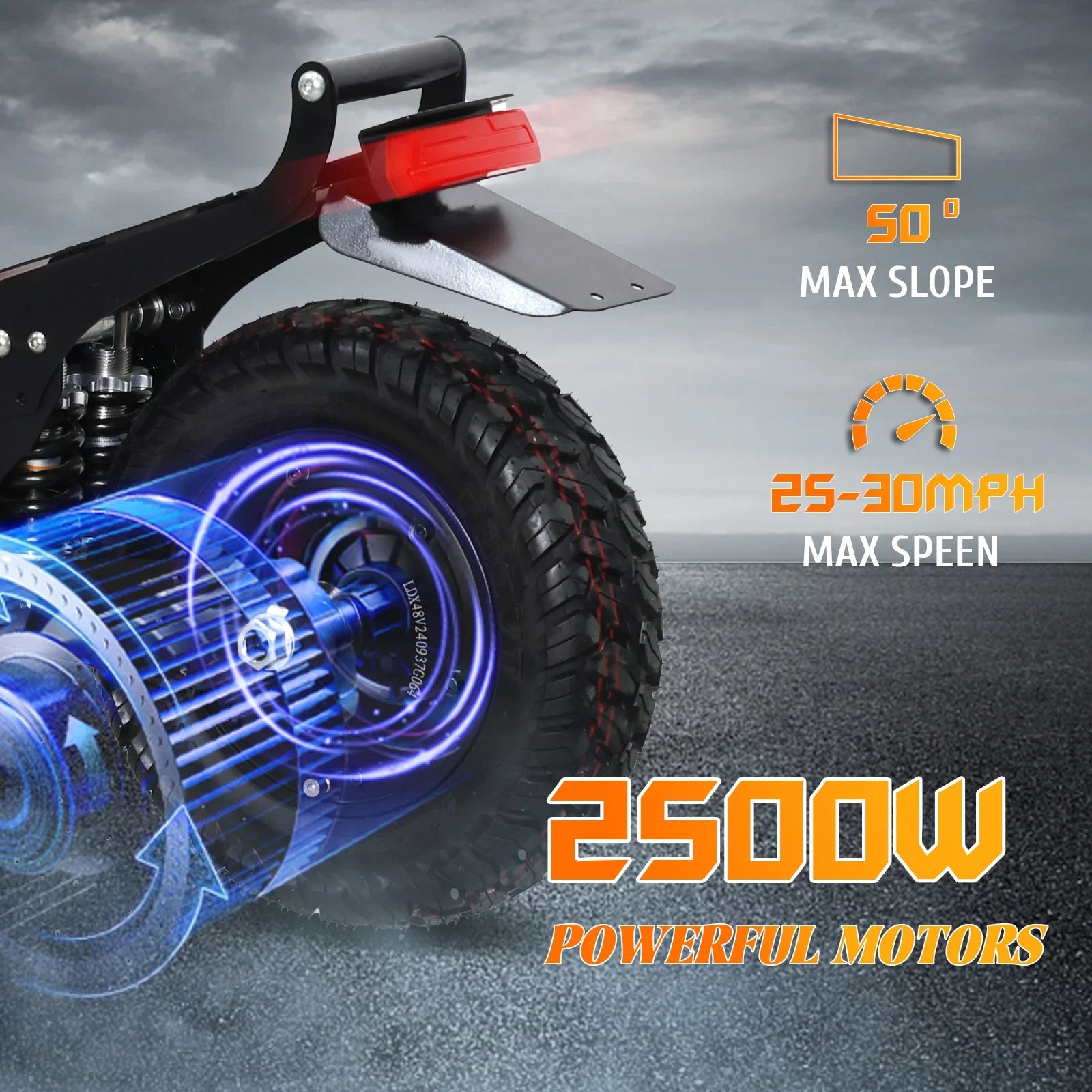 This off-road electric scooter combines powerful performance with advanced technology for an exceptional riding experience. Featuring a robust 2500W motor and a long-lasting 16 Ah battery, it delivers impressive power and range for both urban commuting and rugged terrains.